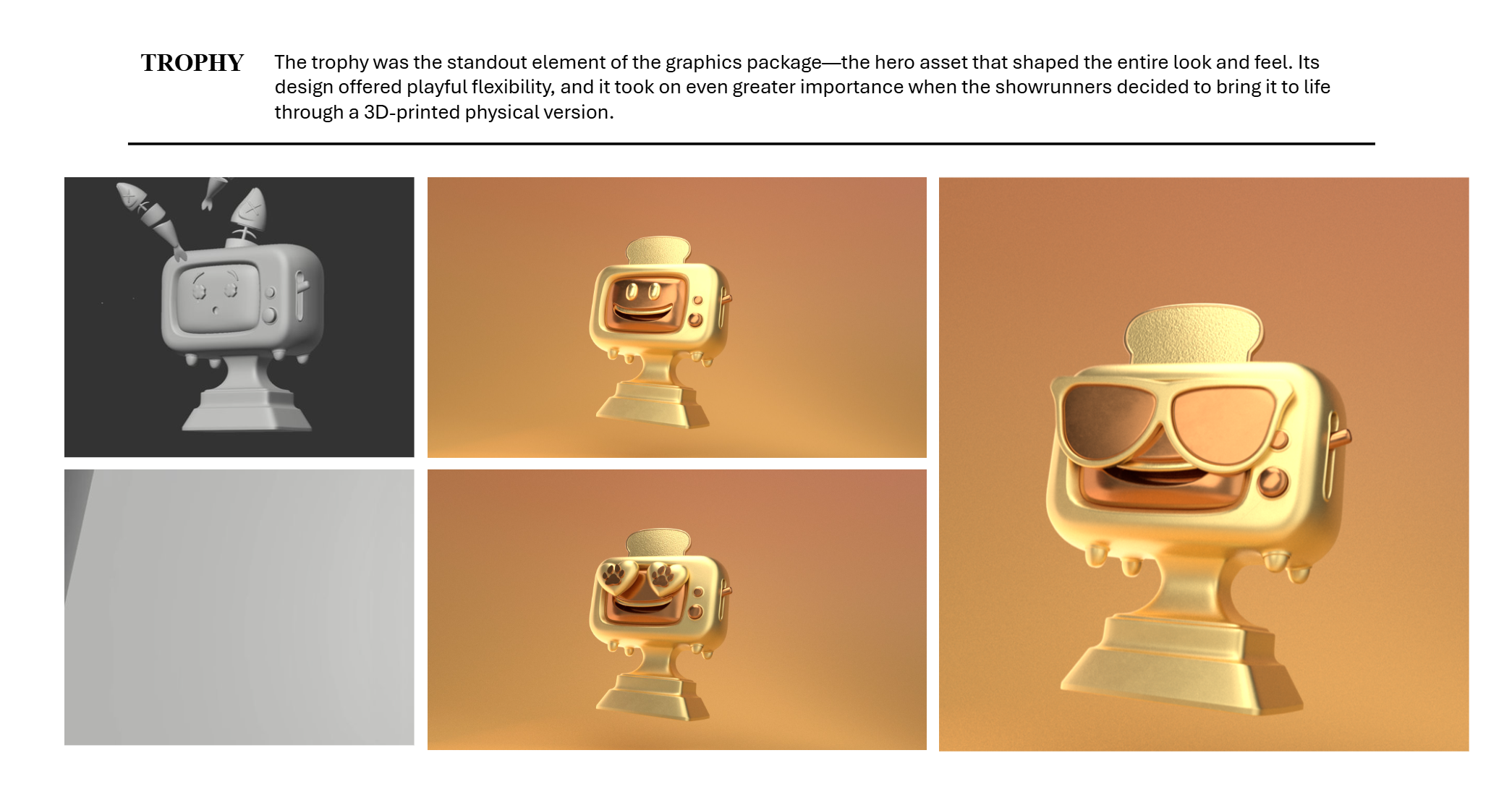 This project was created for the Breakfast Television Viewer’s Choice Awards broadcast package, which included multiple motion segments throughout the show. I was responsible for the full 3D production process, including design, modeling, animation, and final delivery. In addition to the primary motion graphics, I also produced monitor graphics for the screens on the broadcast set and prepared multiple delivery formats to ensure the visuals integrated seamlessly across all broadcast elements.